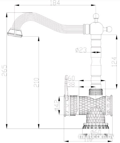 | Длина (вылет) излива | 184 мм |