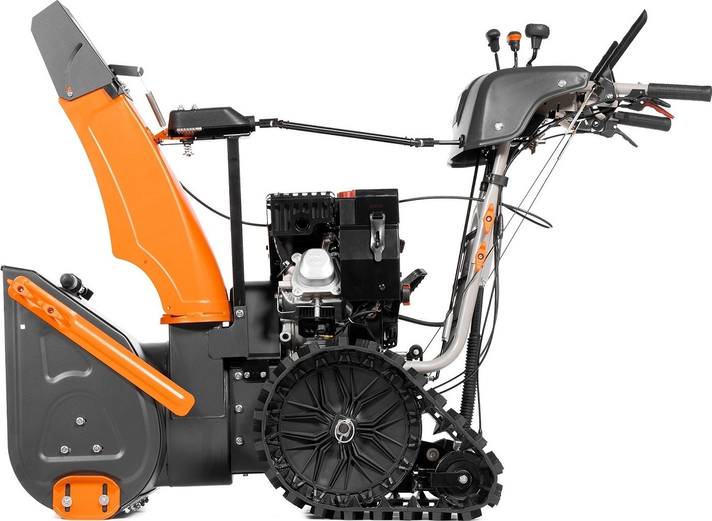 | Информация | WXE 300 EFI инжекторный двигатель DAEWOO Инновационный двигатель WXE 300 EFI с системой непосредственного впрыска топлива разработан специально для снегоуборщиков. Обладает увеличенной до 25% мощностью и сниженным до 20% расходом топлива по сравнению с карбюраторными моделями. EFI (Electronic Fuel Injection) EFI - система электронного впрыска топлива. Обеспечивает подачу необходимого количества топлива в зависимости от нагрузки и температуры, обеспечивая: - увеличение мощности двигателя; - сокращение расхода топлива; - стабильность работы двигателя при изменении нагрузки; - легкий запуск при отрицательных температурах, без регулировок воздушной и топливной заслонок. Электронная регулировка оборотов Позволяет выбрать подходящие для работы обороты двигателя. А система EFI будет их поддерживать во время работы, как круиз контроль на автомобиле, обеспечивая оптимальную мощность и расход топлива. Электрозапуск от аккумулятора 21В Запуск двигателя путем нажатия кнопки Start. Питание от аккумулятора DAEWOO 21В. Легкий запуск в любые морозы и возможность использования аккумулятора с инструментом линейки DAEWOO 21В. Уникальные гусеницы ARCTIC TRACK Гусеница объединяет в себе сразу 2-а решения: - Колесо для повышенной маневренности - Гусеница для исключительной проходимости и работы на склонах. 2Х MODE ARCTIC TRACK 1Х MODE максимальная проходимость в глубоком снегу и в горах. 2Х MODE маневренность и скорость работы колесного снегоуборщика. Гидравлический привод Гидроцилиндр обеспечивает плавное изменение положения гусеницы, нажатием одно рычага, и надежный ее прижим к поверхности без дополнительных усилий. Трансмиссия Disc-o-Matik Система обеспечивает выбор скоростей: 6 скоростей вперед и 2 скорости назад, в зависимости от высоты снежного покрова. Простая и одновременно надежная система перемещения фрикционного диска для изменения скорости. Система облегченного маневрирования DIRECT DRIVE Система облегченного маневрирования включает в себя возможность отключения каждой гусеницы в отдельности и позволяет легко выполнить поворот. Панель управления Панель управления с системой изменения скорости передвижения, направления и дальности выброса снега обеспечивает комфортное управление и работу со снегоуборщиком. Система изменения направления выброса Изменение угла выброса на 200 градусов дает возможность мгновенно изменять направление и дальность выброса снега непосредственно с панели оператора с большим углом поворота. Взаимная блокировка рукояток Нажатие 2-х рукояток управления приводит к их взаимной блокировке. Это позволяет управлять снегоуборщиком одной рукой, и одновременно изменять направление и дальность выброса снега без остановки работы. Подогрев рукояток Для комфортной работы при низких температурах снегоуборщик снабжен подогревом рукояток управления. Кнопка включение и выключение размещена на панели и защищена от попадания снега и влаги. Усиленный редуктор Усиленный редуктор в паре со стальными опорами шнека с подшипниками передает до 95% крутящего момента на рабочие узлы сборки и выброса снега. Выходной вал редуктора крепится на подшипниках большого диаметра, что обеспечивает высокую устойчивость механизмов к вибрации и ударам. LED фара Яркая LED фара обеспечивает освещение рабочей зоны перед снегоуборщиком, помогая работать в темное время суток. Обру