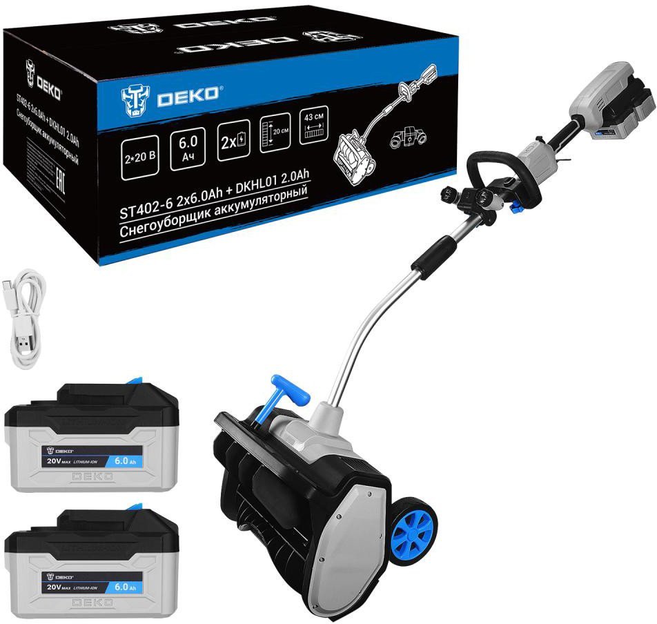 | Комплектация | - Снегоуборщик (готов к сборке) – 1 шт. - Аккумулятор 6,0 Ач – 2 шт. - Двойное зарядное устройство – 1 шт. - Комплект фар – 1 шт. - Руководство по эксплуатации – 1шт. |