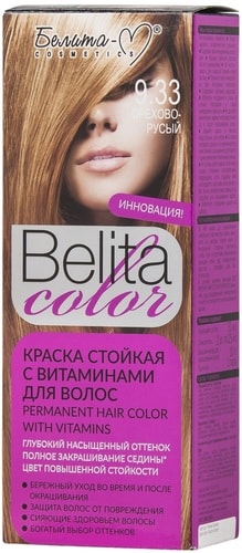 | Информация | Belita Color – это: Формула «интенсивность+стойкость». Красящие пигменты проникают в глубину волоса и равномерно распределяются от корня до кончика. Ровный цвет остается надолго ярким и сияющим и полностью закрывает седину. Двойная помощь волосам при окрашивании. Ухаживающие добавки и витамины питают и защищают волосы, минимизируя ущерб при окрашивании.D-panthenol (провитамин В5) помогает смягчить волосы, сглаживая при этом волосяные чешуйки.Витамин С укрепляет луковицы волос, предотвращая ущерб от агрессивных компонентов.Экстра-уход. Специальный бальзам для окрашенных волос гарантирует надежную защиту цвета, благодаря чему оттенок дольше остается живым и ярким. Волосы ослепительно блестят, а на ощупь мягкие, и гладкие как шелк! Гарантия великолепного цвета и блеска волос. |
