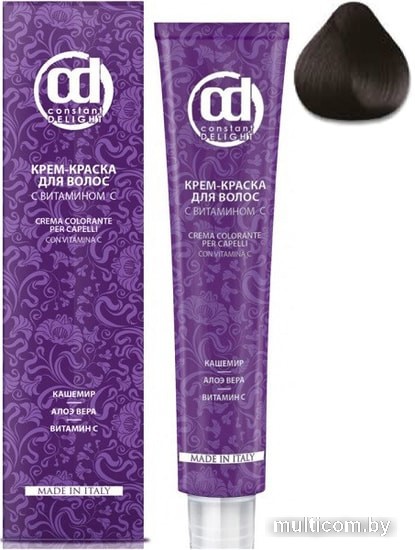 | Информация | Крем-краски для волос с витамином С Constant DelightCrema Colorante Vitamin C обеспечивает одновременно стойкое и бережное окрашивание благодаря высокому содержанию витамина С в составе. Перманентный краситель Констант Делайт имеет кремовую консистенцию и легко наносится на волосы. Ухаживающие компоненты: кашемир, алоэ вера и витамин С - позаботятся о здоровье волос в процессе окрашивания. Краска с приятным запахом и легким однородным нанесением. Гарантирует стойкое закрашивание седины. |