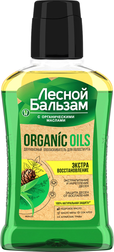 | Информация | Активируй силу масел и встряхни свой привычный уход за полостью рта! Лесной Бальзам представляет первую серию средств с органическими маслами для интенсивного восстановления и защиты зубов и десен с первого дня. Двухфазный ополаскиватель для полости рта Лесной бальзам ЭКСТРА восстановление с органическими маслами и соком алоэ: - Нормализует питание и стимулирует восстановление десен. - Снижает активность бактерий и препятствует образованию налета. |