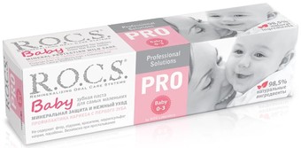 | Информация | Зубная паста R.O.C.S. PRO Baby предназначена для ухода за зубами малышей, начиная с самого раннего возраста - от 0 до 3-х лет. Приготовлена на очень мягкой основе, которая, с одной стороны, обеспечивает качественную очистку зубов, а, с другой стороны, не травмирует тонкую эмаль молочных зубов. Очень мягкая формула зубной пасты для малышей изготовлена из ингредиентов натурального происхождения при помощи уникальной технологии холодной варки, позволяющей сохранять компоненты в активном состоянии. |