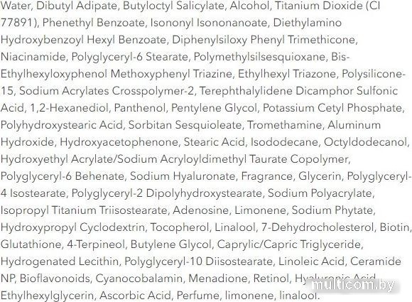 | Активные ингредиенты | гиалуроновая кислота, витамин A, витамин C, витамин B (12, 7), глутатион |