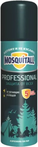 | Информация | Средство репеллентное Mosquitall Профессиональная защита 150 мл – аэрозоль для использования в экстремальных условиях, незаменимое средство защиты для охотников, рыбаков, туристов. Защита от всех летающих кровосущих, таежных и лесных клещей до 5 часов. |