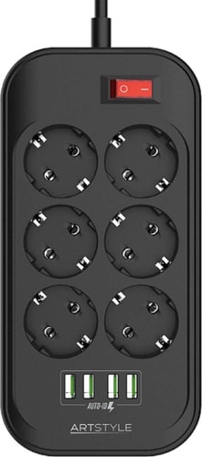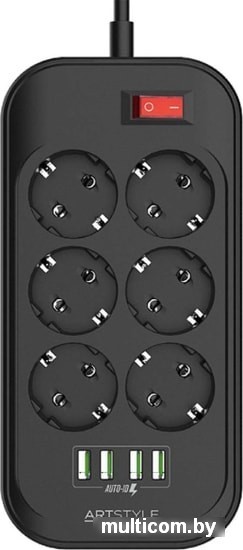 | Информация | Сетевой фильтр Artstyle CL-6403B эффективно защитит вашу технику от помех и перепадов напряжения, в том числе возникающих во время грозы, и резких кратковременных нагрузок, появляющихся сразу после включения электроприбора. Эта модель оснащена шестью утопленными заземлёнными розетками типа «Евростандарт». Благодаря диагональному расположению отверстий вилки любого размера и формы не будут мешать друг другу, даже если вы используете сразу все «гнёзда» одновременно. Максимальная нагрузка составляет 2500 Вт. Кроме того, фильтр снабжён четырьмя портами USB (5 В на 3,4 А) для зарядки ваших смартфонов, планшетов и прочих совместимых устройств. |