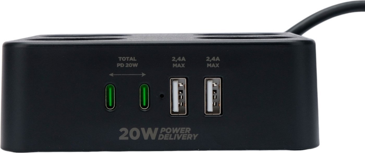| Информация | - Кнопка включения/отключения питания USB-портов и розеток - Защита от импульсных перенапряжений - Защита от короткого замыкания - Защита от перегрузки - Защитные шторки на розетках - Отверстия для крепежа - 4 USB-порта (2*USB A + 2*USB C) для зарядки мобильных устройств - Поддержка быстрой зарядки PD (Power Delivery) - |
