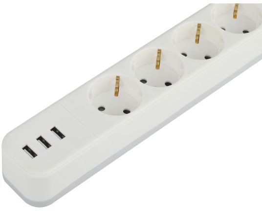 | Информация | ? Сетевой фильтр ЭРА USF-4es-3m-3xUSBA-W с заземлением и выключателем ? 4 розетки, 3USB, провод 3м, ПВС 3x0,75мм2 ? Базовый уровень защиты от импульсных помех, перегрузки, короткого замыкания ? Максимальная мощность 10А/2200 Вт ? Корпус из негорючего пластика (полипропилен) с кольцом для удобного извлечения вилки ? Выключатель со световой индикацией ? Подходит для защиты бытовой и компьютерной техники ? 3USB для зарядки мобильных устройств |