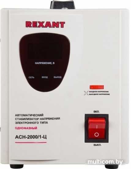 | Информация | Однофазный стабилизатор REXANT для дома и офиса. Защищает бытовую технику от перепадов в сети и короткого замыкания. |