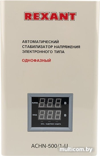 | Информация | Стабилизатор REXANT для дома и офиса. Защищает бытовую технику от перепадов в сети и короткого замыкания. |