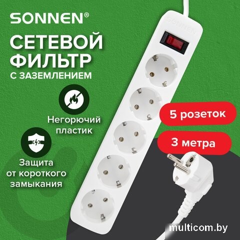 | Информация | - Высококачественный сетевой фильтр SONNEN – это простой, удобный и экономный вариант защиты электроприборов от негативных последствий перепадов напряжения. Устройство обеспечит бесперебойную работу любых электроприборов. - Защита: от импульсных помех, от короткого замыкания, от перегрузки по току. |