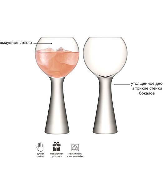 | Информация | Рекомендуемый способ мойки: ручная мойка, протирать насухо мягкой тканью Набор из 2 круглых бокалов для сервировки вина. Объем 550 мл. Комбинируйте набор с другими предметами коллекции Moya для создания законченной композиции. Он упакован в красивую коробку и станет роскошным подарком для всех любителей праздников. Moya — коллекция барного стекла и элементов декора из выдувного стекла с тонкими стенками и утолщенным дном. Дизайнеры хотели создать совершенство форм и линий, которое напоминало бы о столпах яркого света. Добавьте щепотку декандентского шика в торжественную сервировку. Над линией работали лучшие мастера бренда LSA International. Иногда в готовом изделии из выдувного стекла встречаются пузырьки воздуха — это не является браком. |