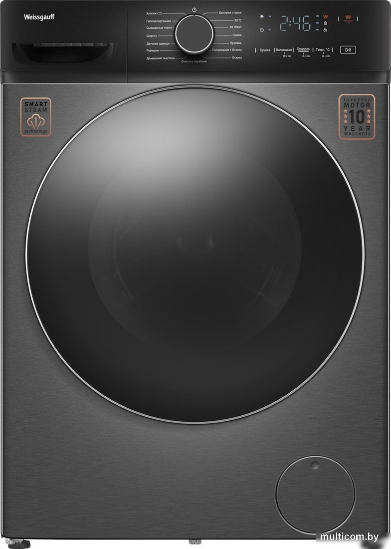 | Информация | -Weissgauff WMD 4828 Inverter Steam Grey - это современная стирально-сушильная машина с инверторным двигателем BLDC, обеспечивающая эффективную и тихую работу, низкое энергопотребление и минимальный износ деталей. Модель рассчитана на загрузку до 8 кг белья при стирке и до 5 кг при сушке, что позволяет справляться с большими объемами одежды за один цикл. -В устройстве реализована программа стирки с паром, позволяющая глубоко очищать волокна ткани, устранять бактерии, микробы и неприятные запахи. Функция Air Wash обеспечивает обработку вещей горячим воздухом – это не только сушка, но и обновление внешнего вида и устранение запахов, особенно для ворсистых и деликатных материалов. -Для ухода за детской одеждой, аллергиков и пуховых изделий предусмотрены специальные режимы – дополнительное полоскание, высокая температура и деликатная обработка. Машина оснащена антимикробным уплотнителем дверцы, подсветкой барабана, функцией дозагрузки белья после старта, а также таймером отсрочки старта до 24 часов. -Скорость отжима достигает 1400 об/мин, сокращая время сушки. Есть блокировка от детей и защита от протечек, цифровой дисплей, индикация ошибок и звуковой сигнал. Weissgauff предоставляет 10 лет гарантии на инверторный двигатель и 2 года на устройство в целом, подтверждая высокое качество и надежность техники. |