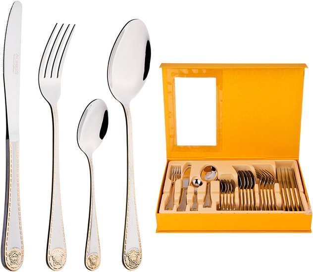 набор столовых приборов, 24 прибора на 6 персон: вилка столовая/ложка столовая/ложка чайная/нож столовый, рабочая часть: нержавеющая сталь, ручка: нержавеющая сталь, коробка для хранения в комплекте