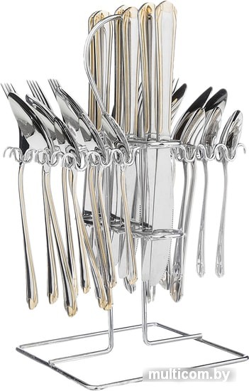 набор столовых приборов, 24 прибора на 6 персон: вилка столовая/ложка столовая/ложка чайная/нож столовый, рабочая часть: нержавеющая сталь, ручка: нержавеющая сталь, подставка для хранения в комплекте