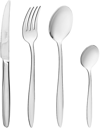 набор столовых приборов, 24 прибора на 6 персон: вилка столовая/ложка чайная/ложка столовая/нож столовый, рабочая часть: нержавеющая сталь, ручка: нержавеющая сталь