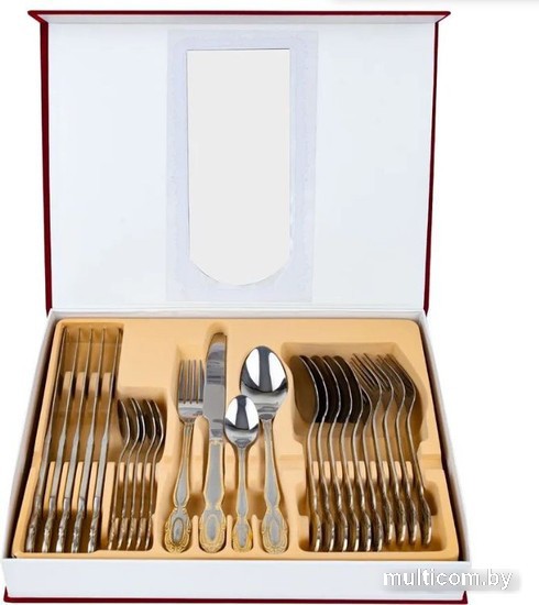 набор столовых приборов, 24 прибора на 6 персон: вилка столовая/ложка столовая/ложка чайная/нож столовый, рабочая часть: нержавеющая сталь, ручка: нержавеющая сталь, коробка для хранения в комплекте