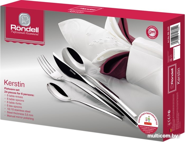 | Состав столового набора | вилка столовая, ложка столовая, ложка чайная, нож столовый |
