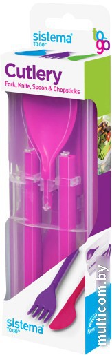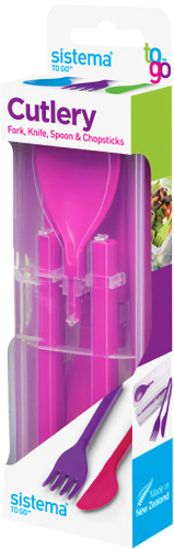 | Информация | В набор столовых приборов входят: нож, вилка, ложка и палочки для еды. Все они компактно упакованы в защитный футляр. Перед использованием просто соедините приборы с ручками. |