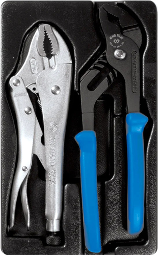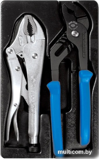 | Информация | Набор шарнирно-губцевого инструмента торговой марки KING TONY предназначен для монтажа и демонтажа крепёжных узлов различных изделий, устройств и агрегатов. Материал ложемента – EVA (ЭВА, этиленвинилацетат). При своей лёгкости, этот материал обладает высокими прочностными характеристиками, стойкостью к маслам и растворителям, при деформации возвращает прежнюю форму. Изготовлен специально для комплектации инструментальной тележки. Состав набора: Захват переставной серии 6511-10A 250 мм Зажим с фиксатором, с закругленными губками серии 6011-10R 250 мм |