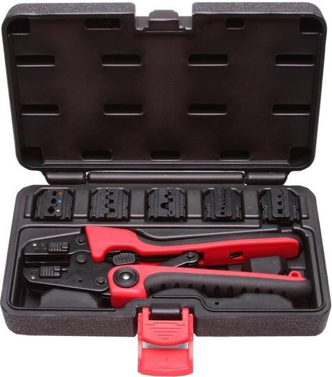 | Информация | Состав набора: пресс-клещи с механизмом быстрой смены матриц комплект из 5 сменных матриц прочный пластиковый кейс Фиксация и высвобождение матриц нажатием на рычаги Универсальный и сверхкомпактный набор У совершенствованный рычажный механизм. Храповой механизм, обеспечивающий блокировку обратного хода до завершения полного цикла опрессовки Эргономичные двухкомпонентные рукоятки с мягкими нескользящими вставками из TPR-резины Регулятор прижимного усилия матриц Механизм разблокировки рукояток Вес набора/инструмента: 1.00/0.45 кг Длина: 215 мм Габариты кейса: 244x152x55 мм Комплектация: Матрица трехпозиционная 01 CTD для опрессовки изолированных наконечников и разъемов НКИ, НВИ, НШКИ, НШПИ, РПИ, РППИ-М, РШИ, РПИ-О, ГСИ Матрица восьмипозиционная 02 CTD для опрессовки втулочных наконечников НШВИ, НШВ Матрица трехпозиционная 03 CTD для опрессовки втулочных наконечников НШВИ, НШВ Матрица трехпозиционная 04 CTD для опрессовки автоклемм Матрица четырехпозиционная 05 CTD для опрессовки неизолированных медных наконечников Пресс-клещи CTD (КВТ) |