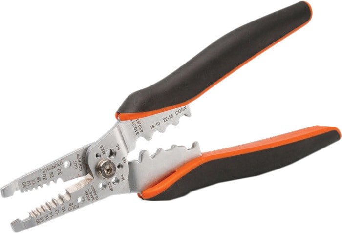 | Информация | Многофункциональный ручной стриппер из нержавеющей стали. Шесть в одном:снятие изоляции и резка проводов сечением 0.5–6.0 мм?резка винтов М2.5, М3, М3.5, М4, М5опрессовка наконечников сечением 0.5–6 мм? и коаксиальных разъемовпассатижиотверстия для формирования петельСемипозиционные прецизионно заточенные лезвия для снятия изоляцииМатериал корпуса: нержавеющая стальЭргономичные двухкомпонентные рукоятки |