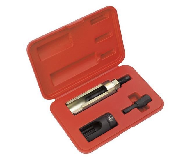 | Информация | Демонтаж форсунок на дизельных двигателях Mercedes-Benz. Область применения: Станции технического обслуживания (СТО), автосервисы, автомастерские. Применение: Mercedes-Benz C-Class, E-Class, Sprinter (CDI OM 611 / 612 / 613); Jeep Grand Cherokee 2.7 CRD. Подходит для: 108 CDi, 110 CDi 16v, 112 CDi 16v, C220 CDi 16v, E200 CDi 16v. Комплектация: головка разрезная 29 мм / 1/2"" / длина 78 мм; головка с шестигранной вставкой 10мм для извлечения внутренней части форсунки; съемник форсунок. |
