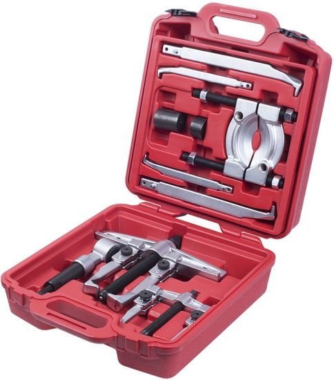 | Информация | Демонтаж подшипников, шкивов и прочих деталей, запрессованных в обойму или установленных на вал. Применение съёмника помогает демонтировать деталь без перекоса и с соблюдением соосности. Съемник подшипников сегментного типа применяется для демонтажа плотно посаженных деталей, где захват лапами невозможен. Комплектация и описание: тип съёмника: 2-захватный, наборный, монтируемый, сегментный, с гидравлическим усилителем; съемник 2-захватный малый: траверса 2-захватная; болт силовой центральный; захваты сменные 100 мм – 2 шт.; захваты сменные 200 мм – 2 шт.; съемник 2-захватный большой: траверса 2-захватная; болт силовой центральный; захваты сменные 160 мм – 2 шт.; захваты сменные 300 мм – 2 шт.; съемник сегментного типа: 35-115 мм; гидравлический усилитель: 30 тонн; шайба-удлинитель: 30 мм; шайба-удлинитель: 60 мм.  |