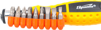 | Информация | Реверсивная отвертка с набором бит 9 шт SPARTA 115455 - это удобный и надежный ручной инструмент, который оснащен реверсивным механизмом для более комфортного выполнения работ. Отверткой легко завинчивать и отвинчивать различные крепежные элементы без перехватывания ручки в ладони. Для более надежного захвата отвертка имеет нескользящую резиновую накладку на пластиковом корпусе рукояти. Преимущества отвертки SPARTA 115455 Длительный срок службы; Надежность; Реверсивный механизм; Магнитный фиксатор для бит; Простое использование; Противоскользящие свойства ручки; В комплекте 9 бит. Показать всеСкрыть |