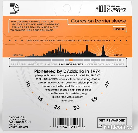 | Информация | Если вы любите делать подтяжки и/или играете на гитаре достаточно мягко, то вы оцените этот комплект. За счет меньшего калибра создается меньшее натяжение, и от вас, соответственно, требуются меньшие усилия для зажатия струн. Калибр струн: .010, .014, .023, .030, .039, .047. Струны EJ15 имеют шестиугольный стальной сердечник, а на 4 нижних струнах используется обмотка из фосфорной бронзы. Этот материал дает оптимальное звучание с достаточным количеством басовых частоты и читаемыми верхами. Струны поставляются в герметичной и экологически безопасной упаковке, защищающей от коррозии. |