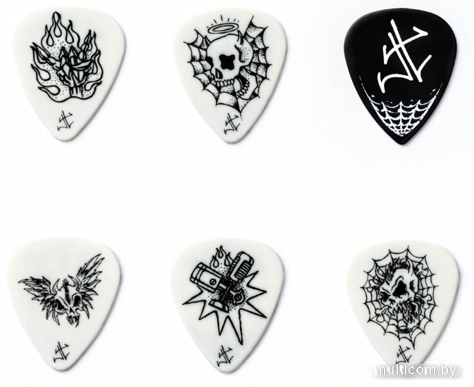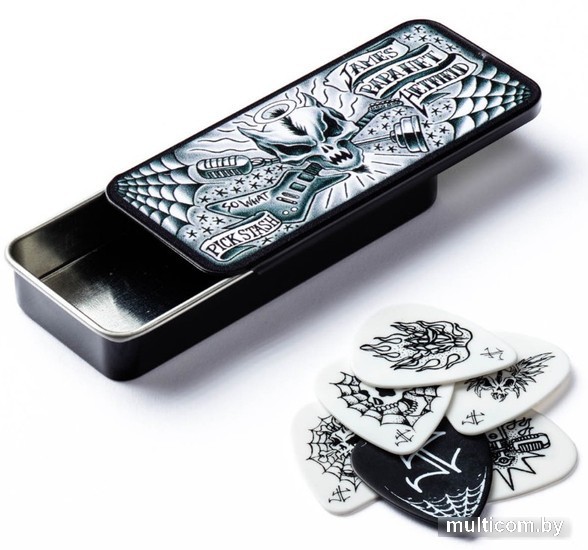 | Информация | Неформальный художник из Сан-Франциско по прозвищу Грязный Донни сделал дизайн 6 медиаторов для Джеймса Хэтфилда, лидера легендарной группы Metallica. Эти рисунки хорошо гармонируют с духом тяжелой музыки и станут замечательным подарком для фаната группы. Медиаторы поставляются в металлическом футляре. |