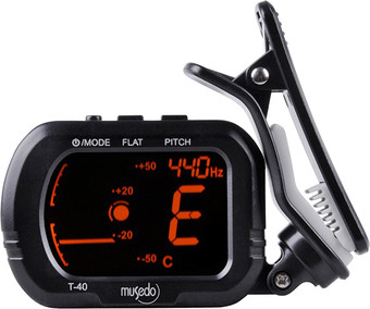 | Информация | Тюнер с зажимом T-40 — это новое поколение маленьких, точных и простых в использовании тюнеров от Musedo. Дисплей можно повернуть практически под любым углом или в любое положение для удобства просмотра во время настройки. Цвет дисплея изменится с оранжевого на зеленый, чтобы пользователь мог очень быстро настроиться. Дополнительные визуальные элементы в виде стрелок показывают, резкая или плоская нота и какой способ настройки струны. В шумной обстановке это важно для быстрой и точной настройки. |