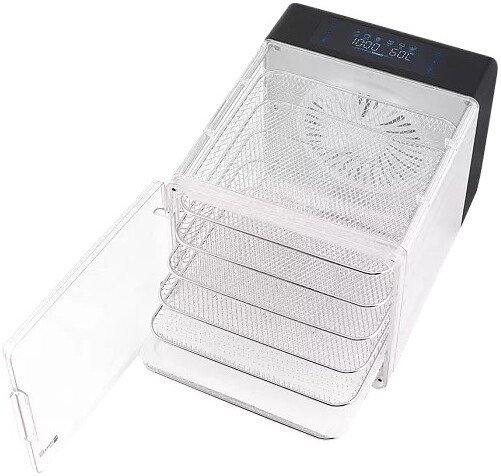 | Информация | - Сушилка для овощей и фруктов Timberk T-PFD42149 - это современное устройство, позволяющее быстро и качественно сушить различные продукты:фрукты, овощи, ягоды, грибы, мясо и травы. Благодаря мощности 600 Вт и технологии ULTRA DRY с мощным вентилятором и широкими лопастями, прибор обеспечивает равномерное распределение воздуха по всем восьми уровням. - Модель оснащена сенсорной панелью управления с LCD дисплеем, что облегчает выбор одной из 6 автоматических программ, а также позволяет настраивать температуру сушки в диапазоне 30-75°C и устанавливать таймер до 48 часов. Прозрачный корпус даёт возможность контролировать процесс сушки на каждом этапе. - В комплекте с сушилкой идут 6 металлических поддонов, поддон для ягод и поддон для пастилы, что делает устройство универсальным для любых видов заготовок. Максимальная загрузка достигает 9 кг, а размер поддонов - 29х29 см, что позволяет обрабатывать сразу большой объём продуктов. - Особое удобство обеспечивает компактная сборно-разборная конструкция и отсек для хранения шнура. Устройство отличается низким уровнем шума и простотой в уходе. Timberk T-PFD42149 станет отличным выбором для домашнего использования и поможет сохранить витамины и вкус продуктов на долгое время. |
