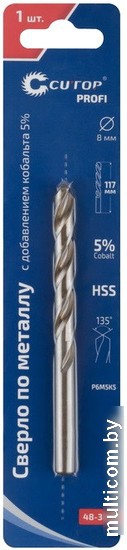 | Информация | Сверло по металлу Cutop Profi с добавлением кобальта 5% для профессионального использования предназначено для сверления отверстий в углеродистых и легированных сталях, серых и ковких чугунах, цветных металлах и пластике. Класс точности А1, цилиндрический хвостовик. Угол заточки 135 градусов. Материал: быстрорежущая HSS сталь c добавлением кобальта 5% (Р6М5К5). Кобальтовые сверла по металлу более надежны и долговечны, режущая кромка обладает большей стойкостью к высокой температуре и износу. Сверление может осуществляться даже при больших температурных нагрузках. Сверло характеризуется высокой устойчивостью к излому. Специальная геометрия способствует хорошему отводу стружки. Отверстия в металле, после его обработки сверлом кобальт получаются идеально точными. На их внутренних стенках нет заусенцев и дефектов. |