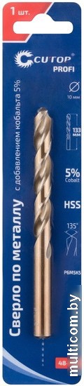 | Информация | Сверло по металлу Cutop Profi с добавлением кобальта 5% для профессионального использования предназначено для сверления отверстий в углеродистых и легированных сталях, серых и ковких чугунах, цветных металлах и пластике. Класс точности А1, цилиндрический хвостовик. Угол заточки 135 градусов. Материал: быстрорежущая HSS сталь c добавлением кобальта 5% (Р6М5К5). Кобальтовые сверла по металлу более надежны и долговечны, режущая кромка обладает большей стойкостью к высокой температуре и износу. Сверление может осуществляться даже при больших температурных нагрузках. Сверло характеризуется высокой устойчивостью к излому. Специальная геометрия способствует хорошему отводу стружки. Отверстия в металле, после его обработки сверлом кобальт получаются идеально точными. На их внутренних стенках нет заусенцев и дефектов. |