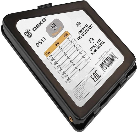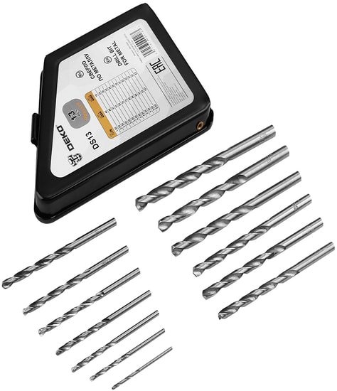 | Комплектация | 13 сверл диаметром 1.5, 2, 2.5, 3, 3.2, 3.5, 4, 4.5, 4.8, 5, 5.5, 6, 6.5мм. |