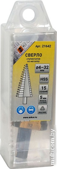 | Информация | Сверло для металла ступенчатое 4-32мм, 15 ступеней, шаг 2 |