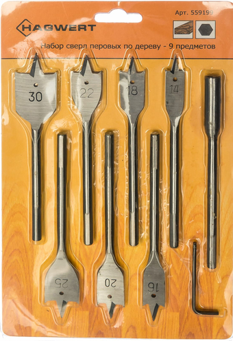 | Информация | - 7 сверл следующих диаметров: 14, мм, 16 мм, 18 мм, 20 мм, 22 мм, 25 мм, 30 мм; - Ключ угловой; - Удлинитель. |