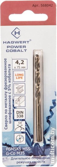 | Информация | ? Набор сверл Hagwert 568042.21.2 (3шт) - идеальный выбор для получения сквозных и глухих отверстий в металлических заготовках. Изготовлен из высококачественной быстрорежущей стали, легированной кобальтом Р6М5К5/М35 (6 % вольфрама, 5% молибдена, 5% кобальта). Подходит для работ повышенной сложности согласно ГОСТ 10902-77. Возможно сверление отверстия глубиной в 4 диаметра без вывода сверла для удаления стружки. Заточка Split Point позволяет засверливать без накернивания. |