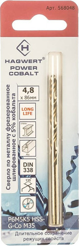 | Информация | ? Набор сверл Hagwert 568048.21.2 (3шт) - это набор из трех сверл, изготовленных из высококачественной быстрорежущей стали, легированной кобальтом Р6М5К5/М35 (6 % вольфрама, 5% молибдена, 5% кобальта). ? Эти сверла предназначены для работы с металлическими заготовками и выполнены согласно ГОСТ 10902-77. ? Они позволяют сверлить отверстия глубиной в 4 диаметра без вывода сверла для удаления стружки благодаря заточке Split Point, которая позволяет засверливать без накернивания. |