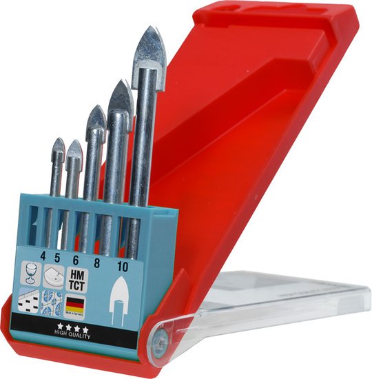 | Информация | Сверла по стеклу, с наконечником из карбида вольфрама, с пластинами специальной и поперечной заточки, для всех вращательных и ударных дрелей, для стекла, фарфора, плитки до твердости 8, керамики, |