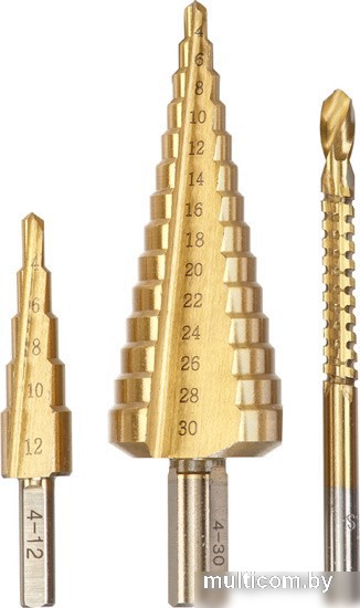 | Информация | 2 ступенчатых сверла размерами 4 – 12 мм и 4 – 30 мм и 1 фрезерное сверло O 6 мм профессионального качества; ступенчатое сверло: со ступенями для наиболее распространенных диаметров сверления, с наконечником для сверления отверстий от малых до больших диаметров без предварительного сверления, даже в самых тонких листах, с кромколомом для получения результатов без заусенцев; сверло фрезерное: для сверления и фрезерования, для получения удлиненных отверстий и расширения отверстий, все сверла набора изготовлены из стали HSS, поверхность азотирована титаном, для стальных листов, цветных металлов и пластмасс, в блистерной упаковке сумка. |