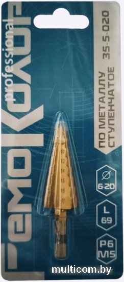| Информация | Сверло ступенчатое Remocolor 35-5-020 6-20 мм предназначено для получения отверстий различного диаметра без перестановки режущего инструмента. На каждой ступени есть маркировка фактического диаметра. Сверло изготовлено из высоколегированной быстрорежущей стали HSS. Количество ступеней — 8 шт. Диаметры: 6-8-10-12-14-16-18-20 мм. Высота ступени — 6 мм. Длина сверла — 75 мм |
