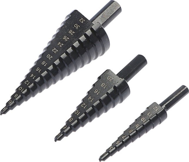 | Информация | Набор сверл ступенчатых, трехгранный хвостовик, 4-12, 4-20, 4-32 мм |