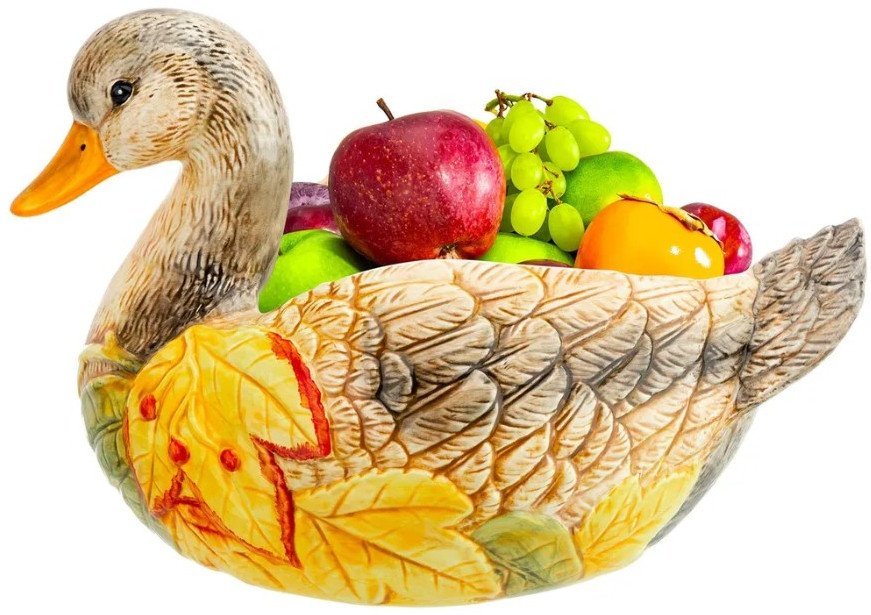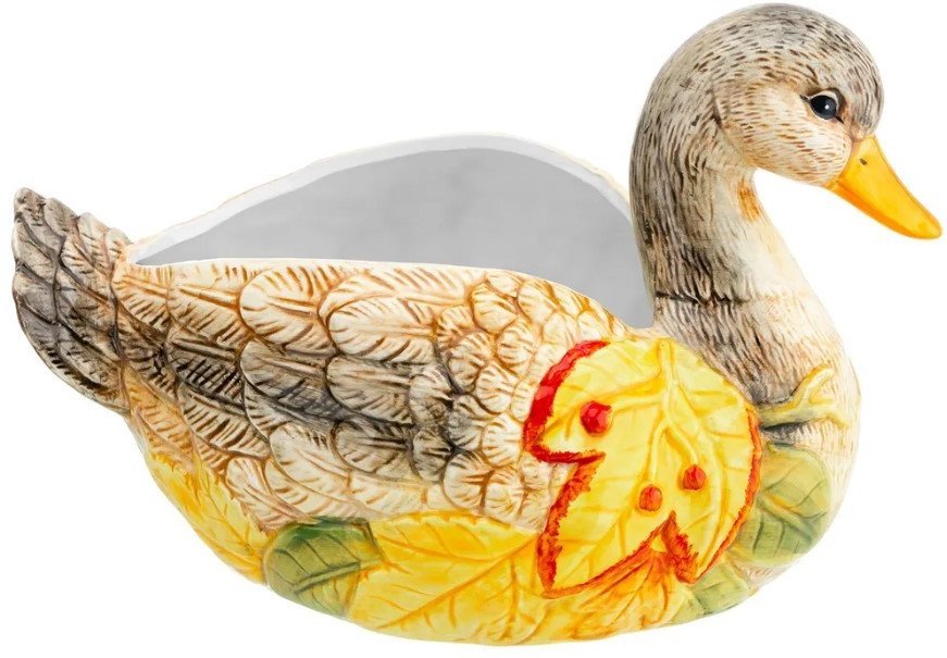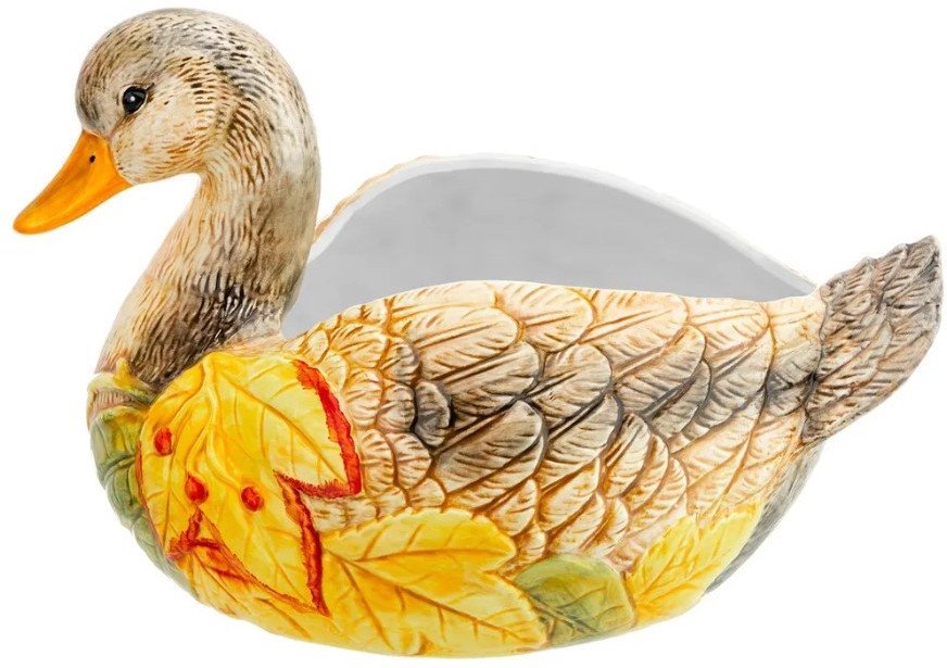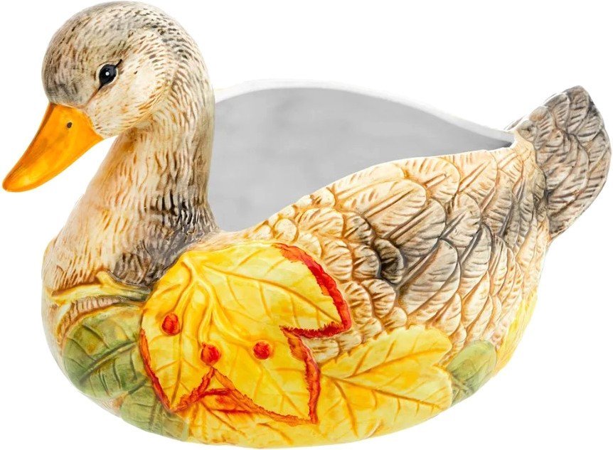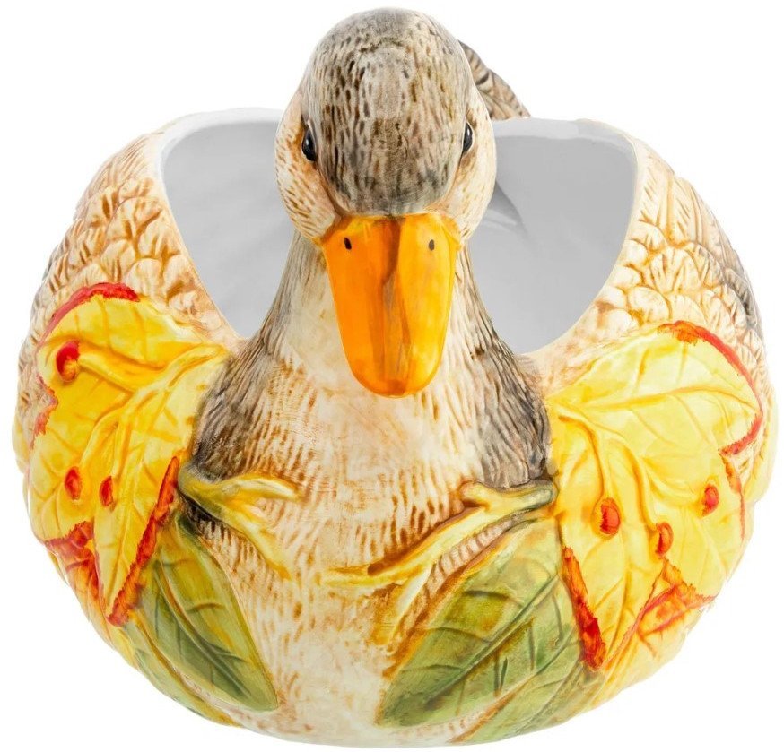 | Информация | Сервировочное блюдо «Уточка» станет украшением интерьера вашей кухни, столовой или комнаты. Декоративная глубокая тарелка выполнена из керамики в форме цветной и детализированной уточки. Эргономичную чашу можно использовать для салатов, гарниров, блюд из мяса и рыбы или сервировки овощей и фруктов. Можно положить в тарелку печенье, конфеты, кексы и другие сладости. Глубокая тарелка удобна при смешивании ингредиентов, вы можете не опасаться, что содержимое попадет на стол. Не подходит для использования в микроволновой печи и посудомоечной машине. Красивая посуда станет отличным подарком любой хозяйке: маме, бабушке, сестре или подруге. Сервировочное блюдо в виде красивой птички с желтыми листьями украсит ваш дом и поможет создать в нем атмосферу тепла и уюта! |