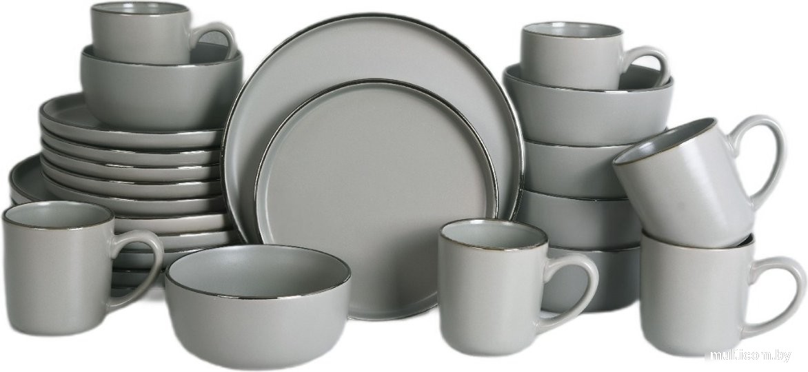 | Состав набора | тарелка столовая обеденная (6 шт.), тарелка закусочная (десертная) (6 шт.), салатник (6 шт.), кружка (6 шт.) |