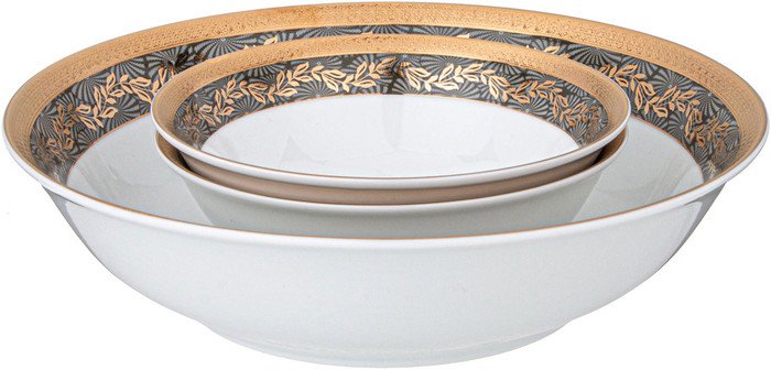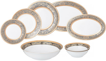 Состав набораблюдо (2 шт.), салатник (3 шт.), тарелка закусочная (десертная) (6 шт.), тарелка столовая глубокая (6 шт.), тарелка столовая обеденная (6 шт.)