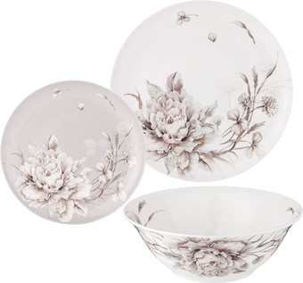 | Состав набора посуды | глубокая тарелка, десертная тарелка, обеденная тарелка |