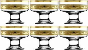 | Информация | Набор креманок имеет алмазную гравировку и напыление, а сочетание матового и червонного золота придают изделиям особый шарм. ? Строгий дизайн цилиндрической формы прекрасно впишется в любой интерьер и сделает подачу десерта более элегантной. Ваши гости по достоинству оценят вкус и внешний вид блюд. Преимуществом креманок является прозрачность стенок и оригинальная форма, которая сама по себе уже служит украшением пищи, находящейся в ней. |
