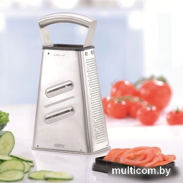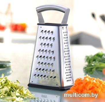 | Информация | Благодаря специальной технологии лазерной заточки, терка имеет очень острые лезвия, которые которые гарантируют превосходный результат. Основание, выполненное из специального пластика, не скользит и не царапает посуду. Имеет контейнер для сбора натертых продуктов. Металлическая ручка обеспечивает удобный хват при использовании.Четыре стороны терки обеспечивают нарезку разными способами: слайсер ломтиками, крупная терка, мелкая терка, терка для крошки. |